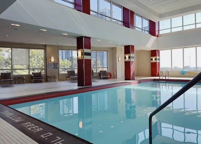 Apartmán Urban Oasis - Modern 1 Bedroom W Pool Access Free Parking, který se nachází ve čtvrti Bellariva, 6 km od Kongresové centrum v Torontu, se pyšní krytým plaveckým bazénem a terasou. Zimní stadion Lambton je od místa vzdáleno 7 km.